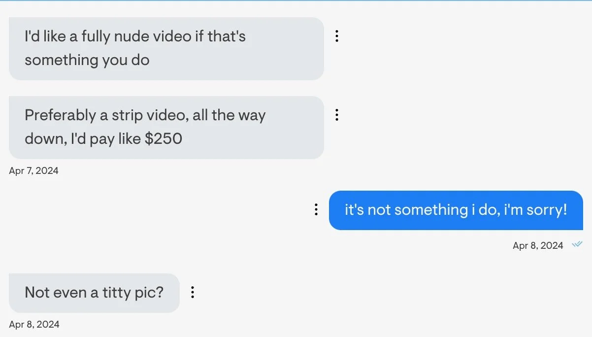 Britt began her OnlyFans account after struggling to make rent. As a tattoo apprentice, she wasn’t making much money and was putting in long hours. She saw influencers all over her feed advertising their content and figured she could do the same. After a few months of producing content, she noticed a client who signed up early into her sex work career, had been sending increasingly worrying messages.